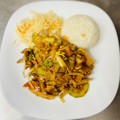 z ryżem i surówką (pikantny)udko z kurczakiem bez kosci